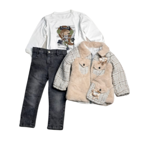 Costumatie din 3 piese pentru fete (Blugi, Bluza, Blanita)