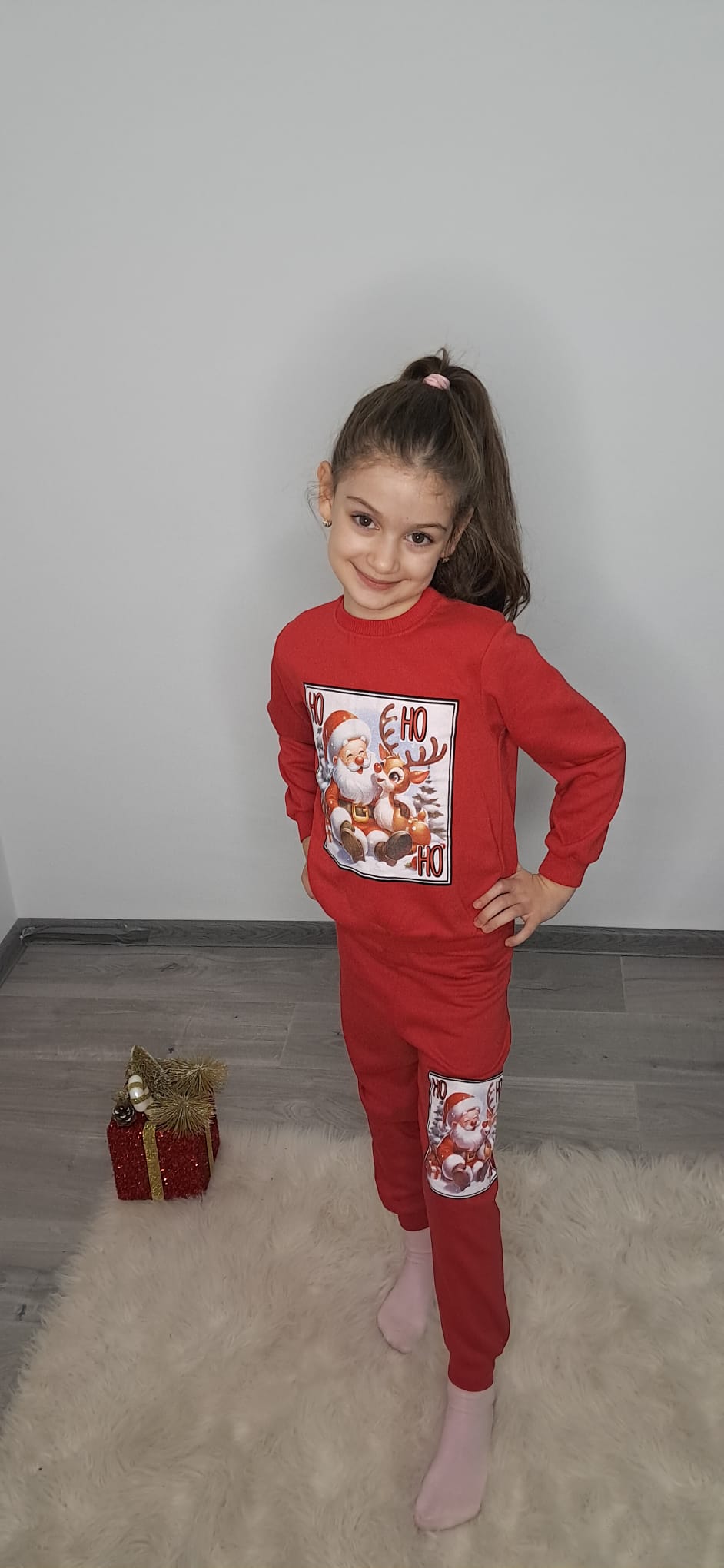 Colanți vatuiti cu imprimeu brad de Crăciun cu căprioară